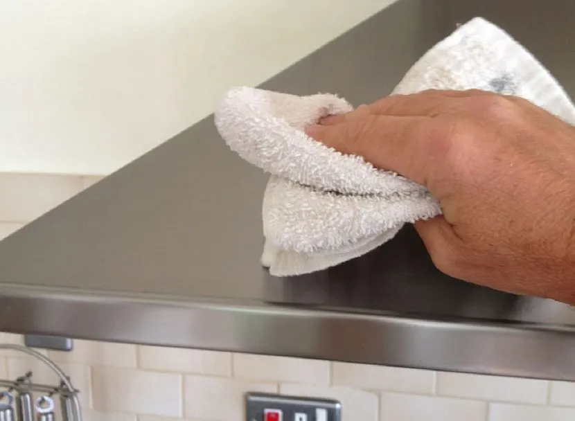- Очищенные поверхности протирают влажной губкой, а затем насухо бумажными кухонными полотенцами.