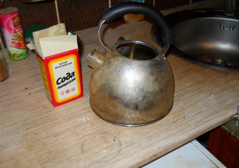 Ингредиенты разводят в 4 л воды, переливают в проблемную емкость. Влага должна полностью покрывать нагар. Посуду с копотью ставят на медленный огонь, кипятят 20 минут. После остывания жидкости темные пятна легко убрать губкой.