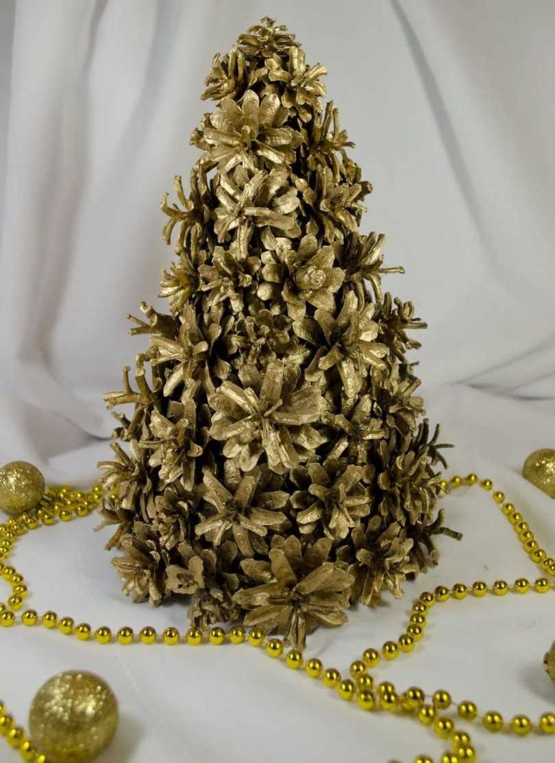 - Начиная с основания, приклеивайте ватные диски к конусу уголками. Украсьте бусинами и мишурой.