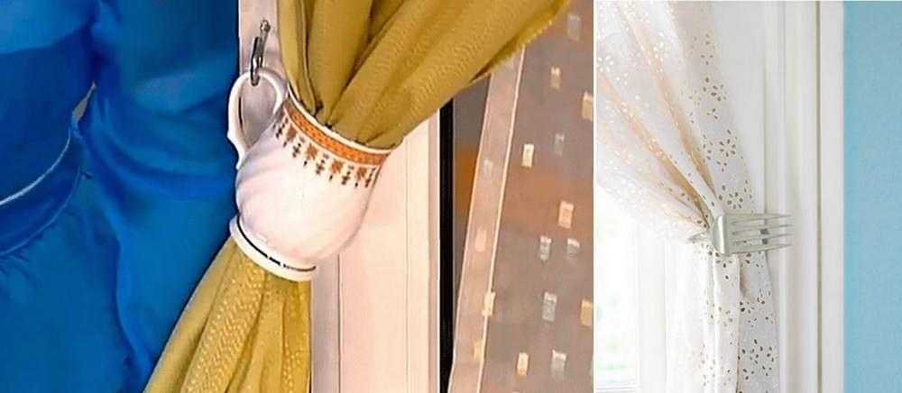 К самодельным подхватам относятся любые приспособления и изделия, способные зафиксировать и удерживать собранную штору, например: