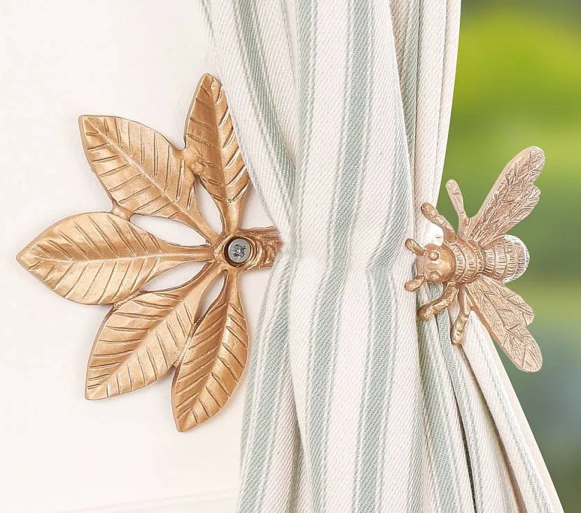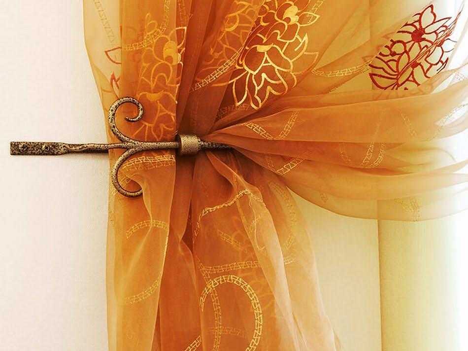 - Декоративные — для придания уникальности интерьеру. С этой целью можно изготовить изысканные заколки для штор своими руками. Вот только подбирать их нужно правильно: к примеру, чтобы яркие занавески не выглядели кричаще и безвкусно, нужно подобрать аксессуар нейтрального цвета.