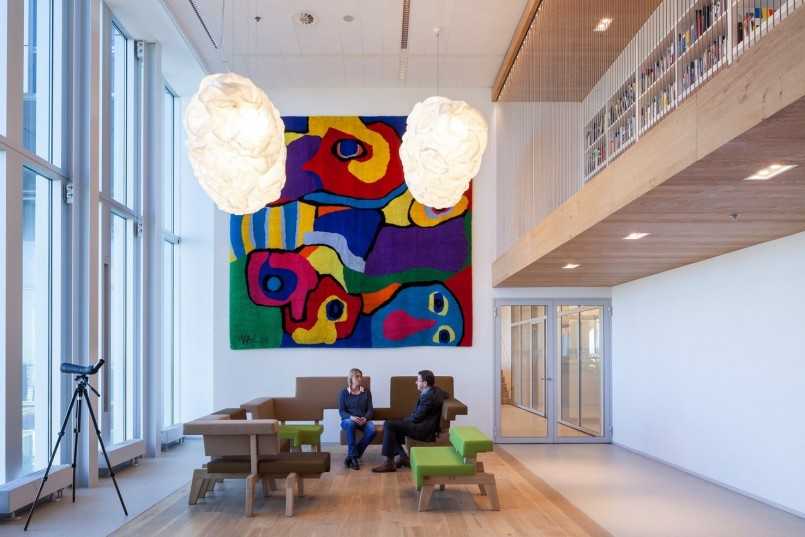 Кричащие гобелены на стенах, перекликаясь с яркими акцентами в комнате, выглядят очень стильно и гармонично