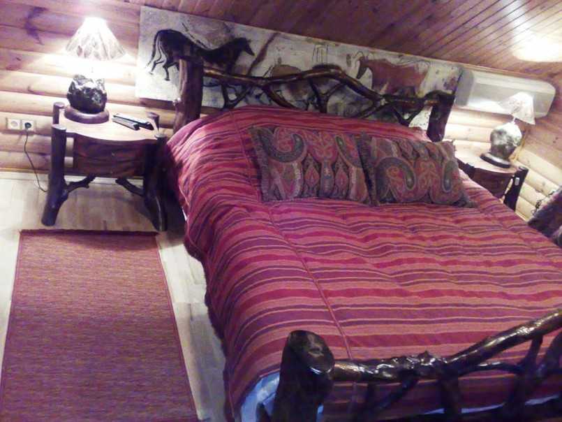 Гобелен надо кроватью — яркая нота в спальне дома-шале
