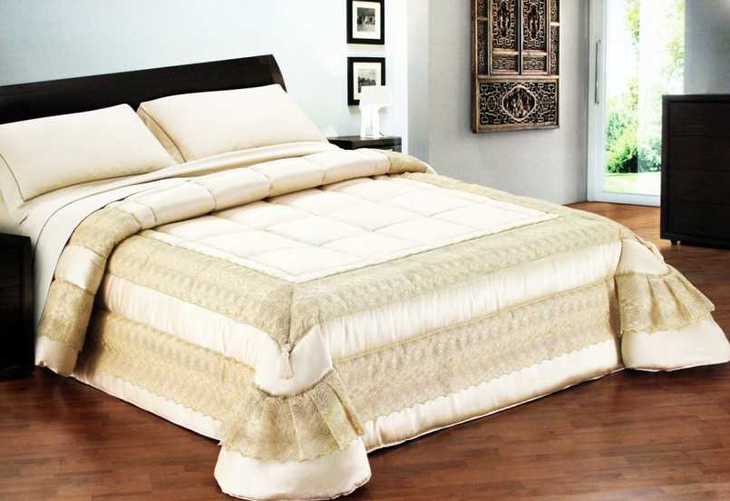 Яркое и пестрое покрывало будет перетягивать внимание на себя и зрительно делать комнату намного меньше, поэтому владельцам небольших спален лучше остановить свой выбор на теплых тонах пастельного оттенка.