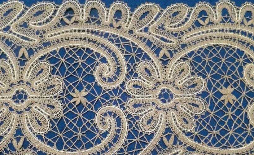Представленный вид ажура по праву считается одним из самых сложных – для его создания могут быть задействованы до полутора тысяч коклюшек, благодаря чему кружево получается многопарным. Преимущественно на таком кружеве встречаются растительные орнаменты.