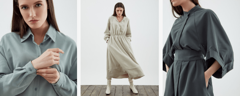 Вещи из модала имеют привлекательный вид из-за своей глянцевитой поверхности: они элегантны, красивы и весьма схожи с шелковыми. Глянцевый блеск превращает вещи даже самых простых фасонов в шикарные выходные наряды.