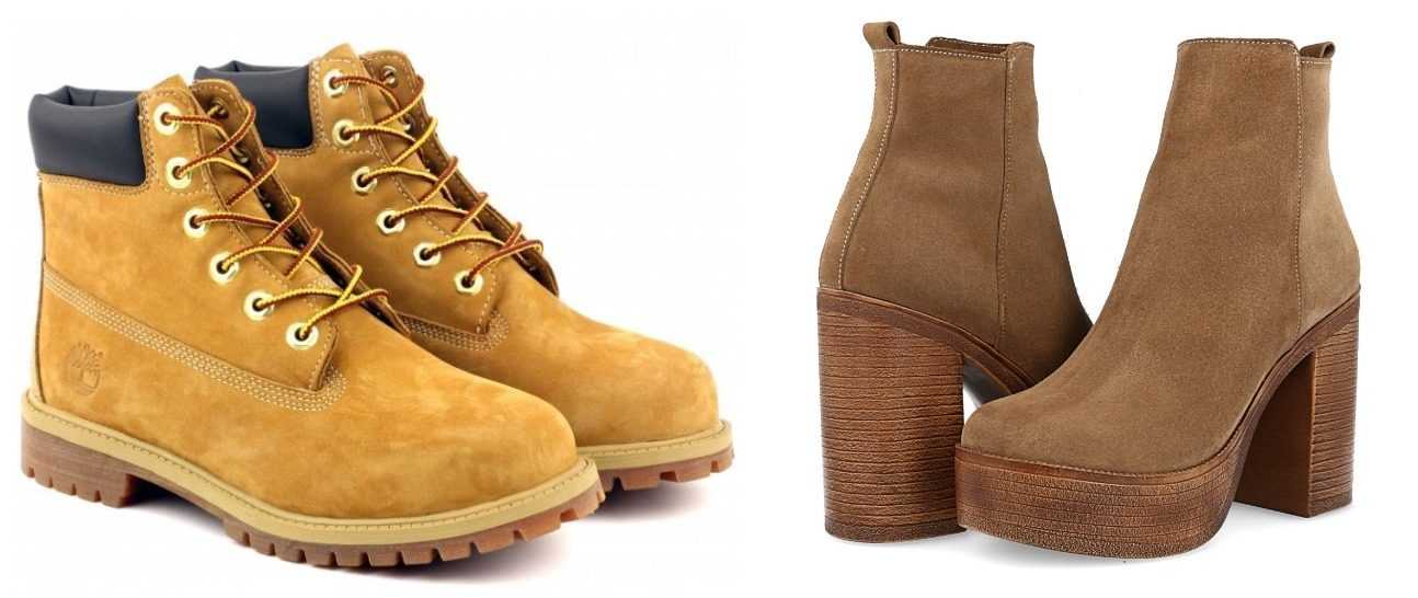 - Модель изделия может также помочь разобраться. Элитная шлифованная кожа используется чаще для обуви элегантной, утонченной: женских ботильонов на шпильке, мужских туфель. Нубук же чаще можно увидеть в грубоватых ботинках типа Timberland.