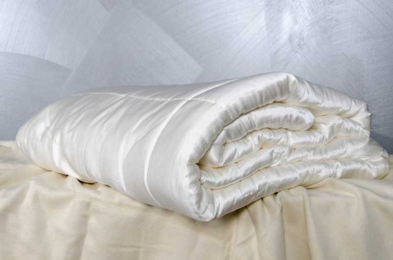 - Высокая теплопроводность. Шелковое волокно имеет теплопроводность выше, чем шерстяное. В жаркое время года постель сохраняет прохладу, а зимой быстро нагревается при соприкосновении с телом человека.