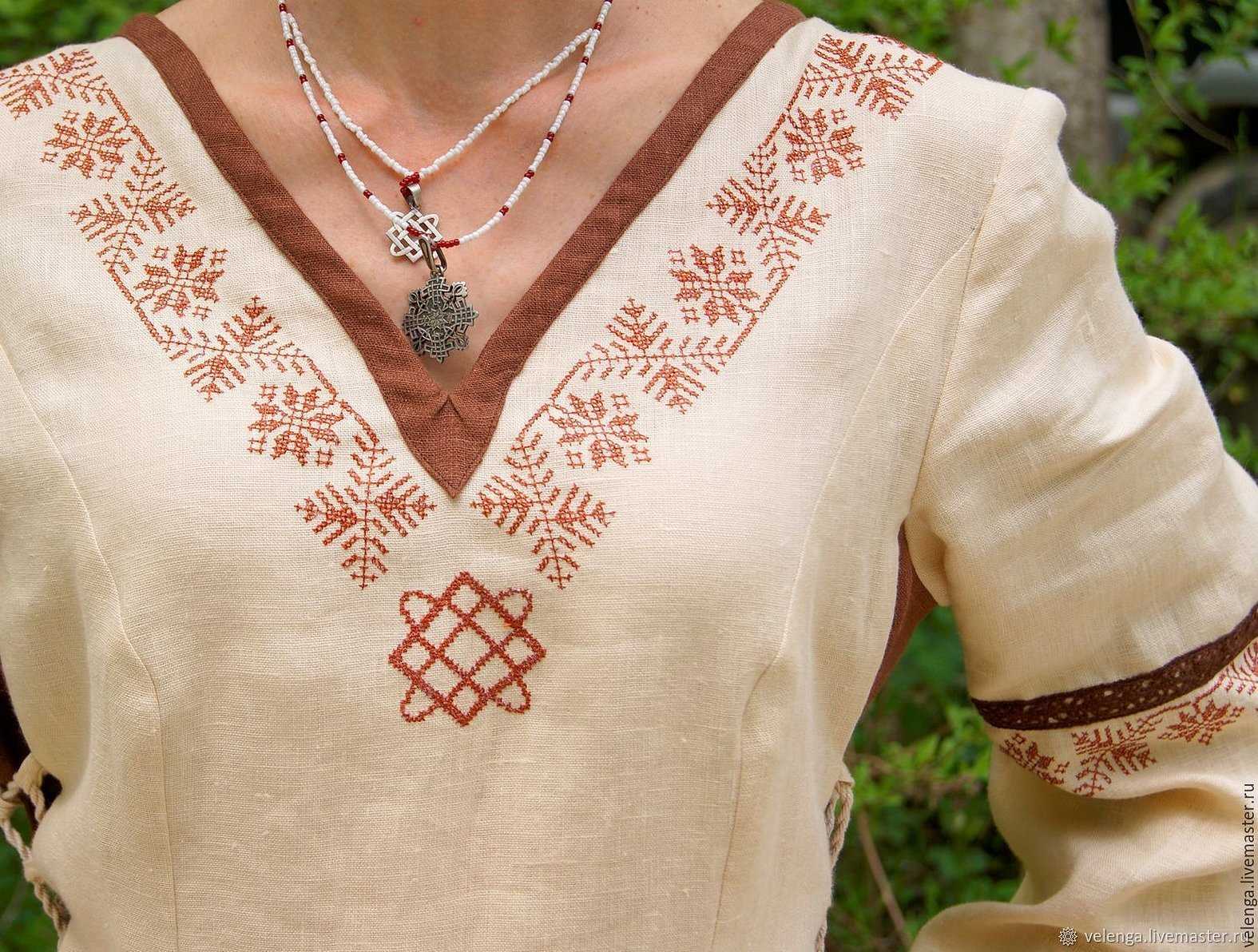 - Лен. Для льняных тканей чаще всего применяют ручную вышивку в виде орнаментов, цветочных, геометрических или растительных узоров.