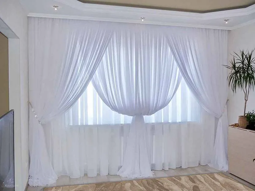 В основном для оформления интерьера используют белую тюль.