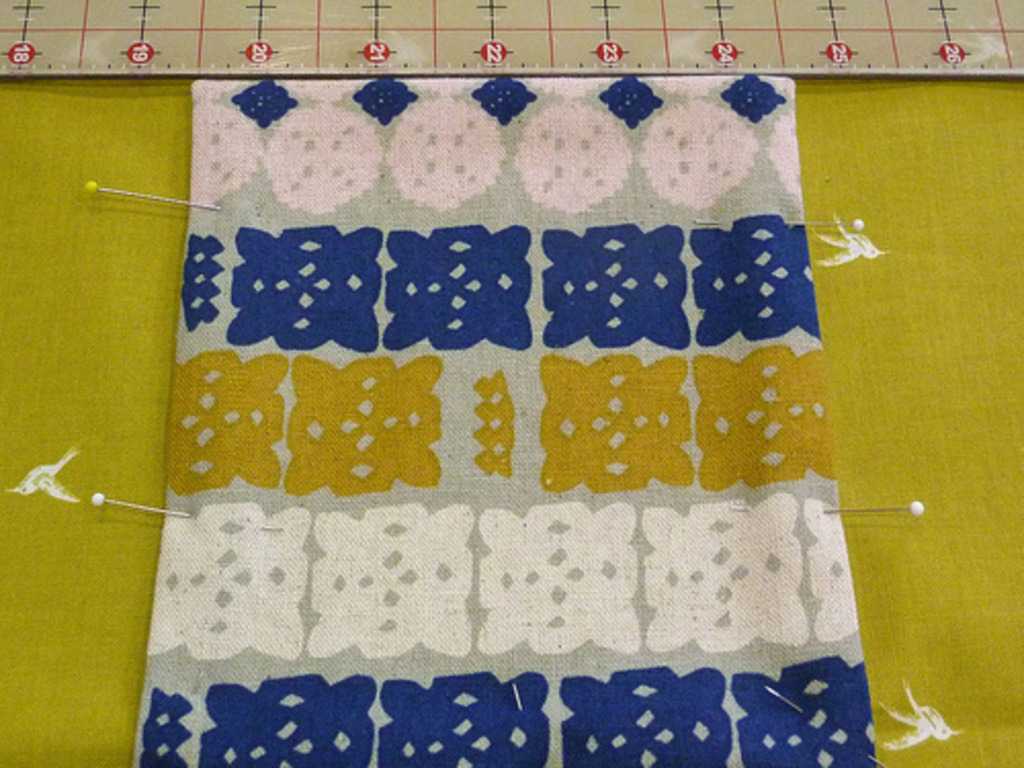 Закрепляем такое положение ткани при помощи булавок.