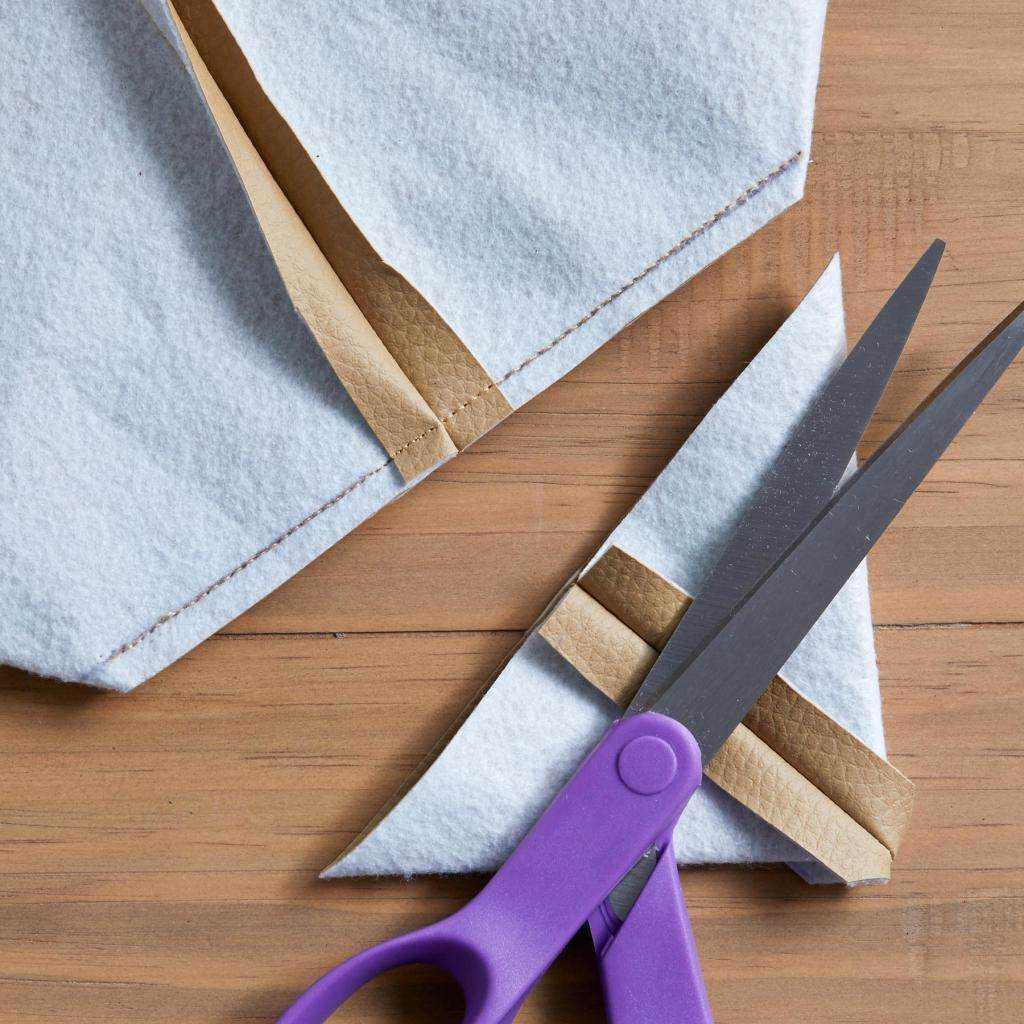 Повторите операцию на второй стороне донышка. Сделайте швы, отрежьте излишки экокожи. Сумка получила объем.