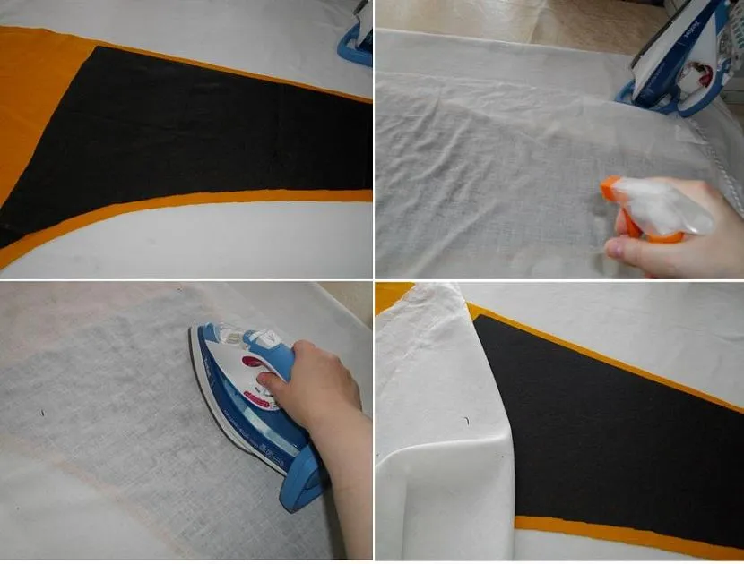 Избежать случайного повреждения основной материи или поверхности нагревательного прибора можно при помощи проутюжельника (вспомогательного хлопчатобумажного материала). В его качестве допускается использовать небольшой отрез бязи.