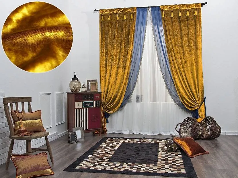 Декор для окон из различных видов бархата обладает следующими положительными качествами: