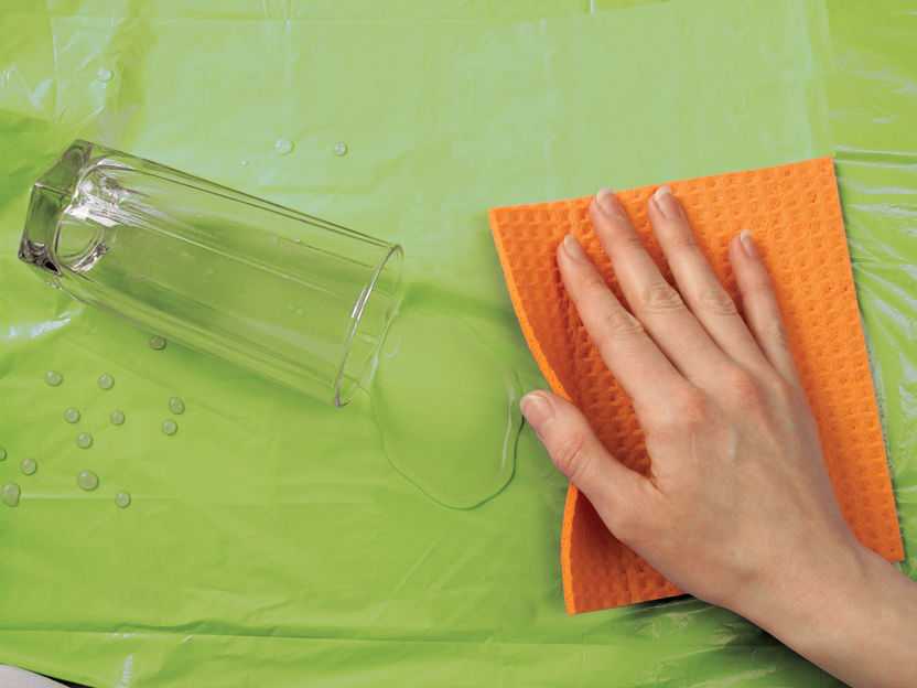 Ткань боится влаги: вода оставляет на ее поверхности следы и разводы. Намокшую поверхность следует как можно скорее тщательно вытереть насухо.