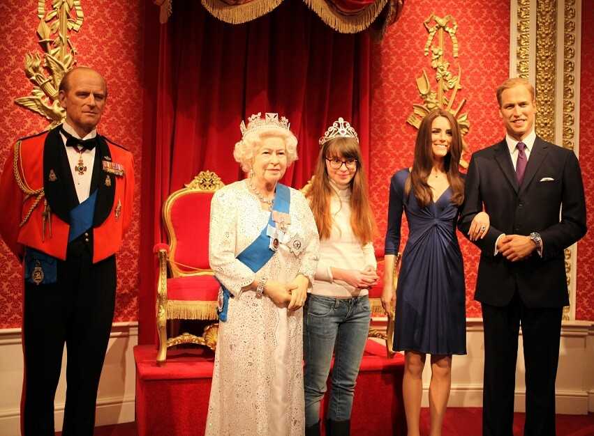 Естественно, почетное место в лондонском филиале музея мадам Тюссо заняли члены королевской семьи Великобритании. Они будто бы ожившие картинки, кажется, что только что со страниц журнала сошла Кейт Мидлтон, нежно держащая за руку супруга, принца Уильяма. А справа от них величественно стоит хозяйка Букингемского дворца, великая Елизавета II. Компанию ей составляет строгий сэр Гарри. И куда же без леди Дианы!