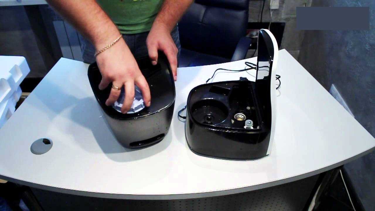 - Выключить прибор. Снять резервуар с основы и разобрать на элементы.