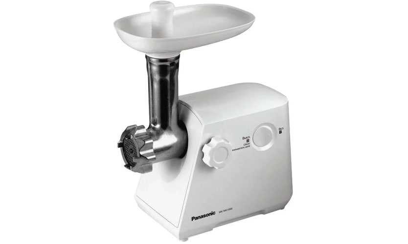 Фирма-изготовитель Панасоник представляет полупрофессиональную мясорубку японской сборки по ощутимой цене. Максимальное время непрерывной работы составляет уже до 15 минут. Оборудована металлическими шестернями. Кнопки механические, тугие, ребенок случайно включить устройство не сможет.