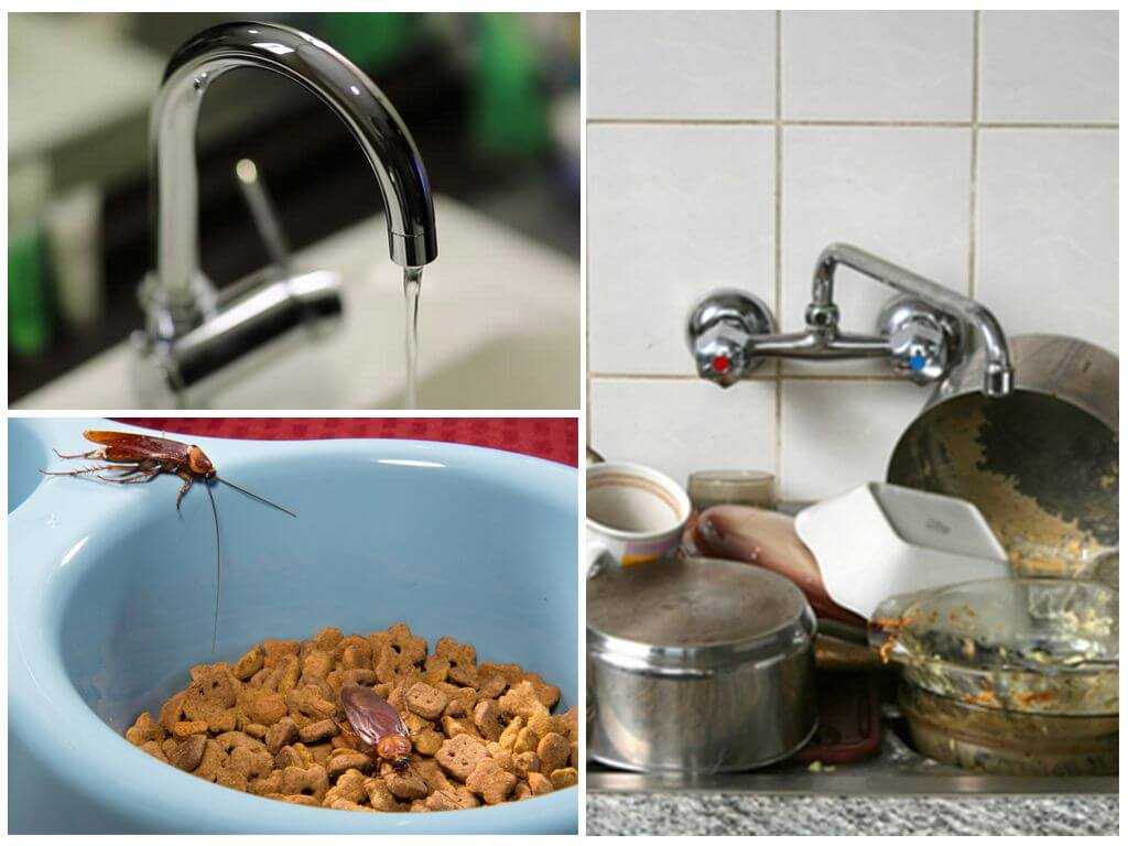 - Вода. Без нее тараканы не живут долго. Протекающий кран, небольшая лужица пролитого компота на столе, разлитая на пол жидкость, даже мойка привлечет насекомых. А если перекрыть все источники воды, насекомые могут пить из грунта в комнатных цветах. На кухне нужно тщательно протирать все поверхности, чтобы не было даже малейшей лужицы, где тараканы могут утолить жажду.