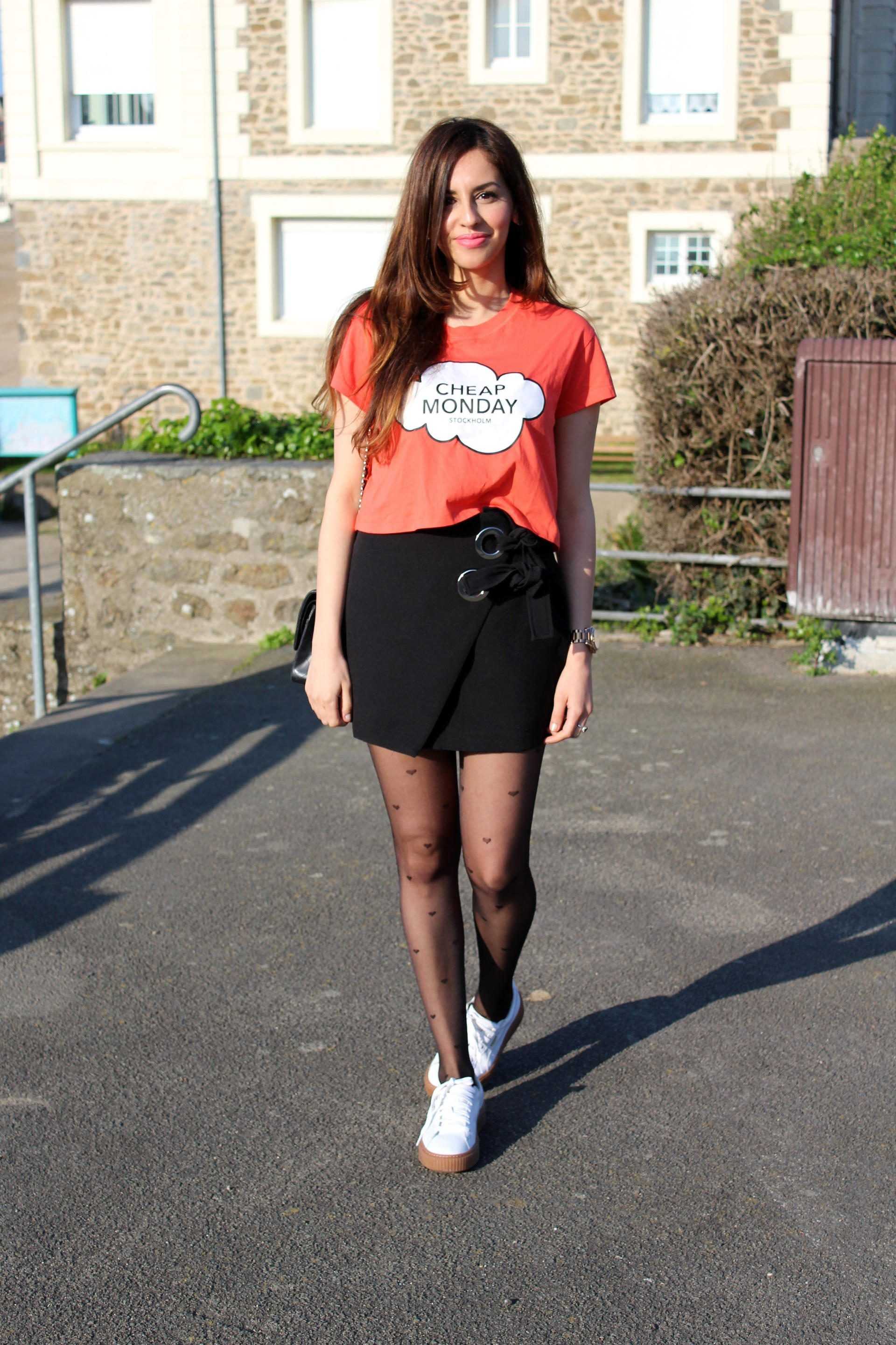 Конечно, при создании ансамбля с колготками черного цвета и белыми кроссовками стоит обращать внимание на возраст, социальный статус и другие условности. Взрослая женщина, руководящая отделом банка, будет выглядеть неуместно, выбрав подобный «лук»