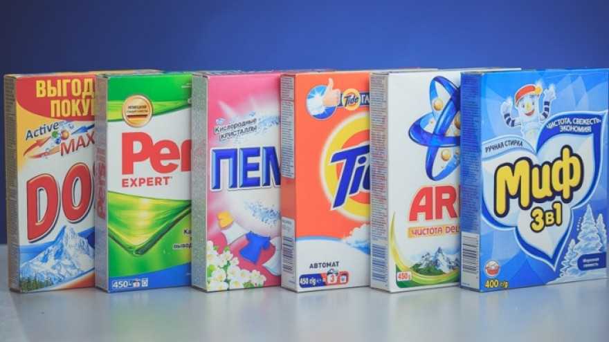 - Стиральный порошок в чистом виде. Добавляется в количестве 100 г на каждые 10 л. То есть на одну кастрюлю придется использовать примерно 0,5–1 кг порошка.