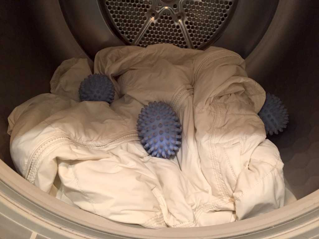 Пух, находящийся внутри изделия от воды может сбиться, что испортит внешний вид изделия. Если все же решено стирать в машине, то вместе с курткой нужно положить теннисные мячи, которые не дадут сбиться пуху в комок.