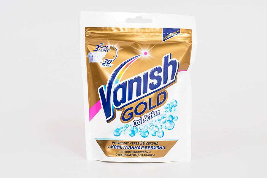 Кислородные отбеливатели более безопасны, они не разрушают ткань и не вызывают аллергии. Их можно применять для ручной и машинной стирки изделий из любых материалов. Подходят они даже для футболок с вышивками или цветными принтами. Популярны средства, такие как «Персоль», «Бос», «Оксиген», Mister Dez, Vanish Oxi Action.