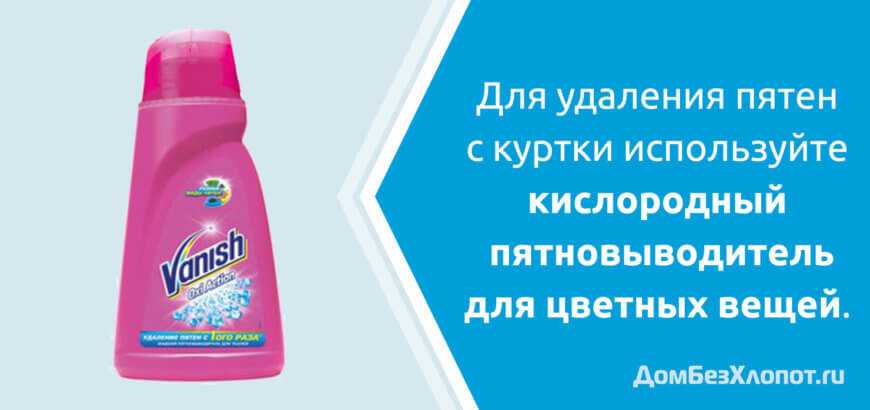Многие пятна можно вывести с одежды с помощью специальных средств бытовой химии. Для чистки пуховиков подходят только безхлорные отбеливатели и пятновыводители: