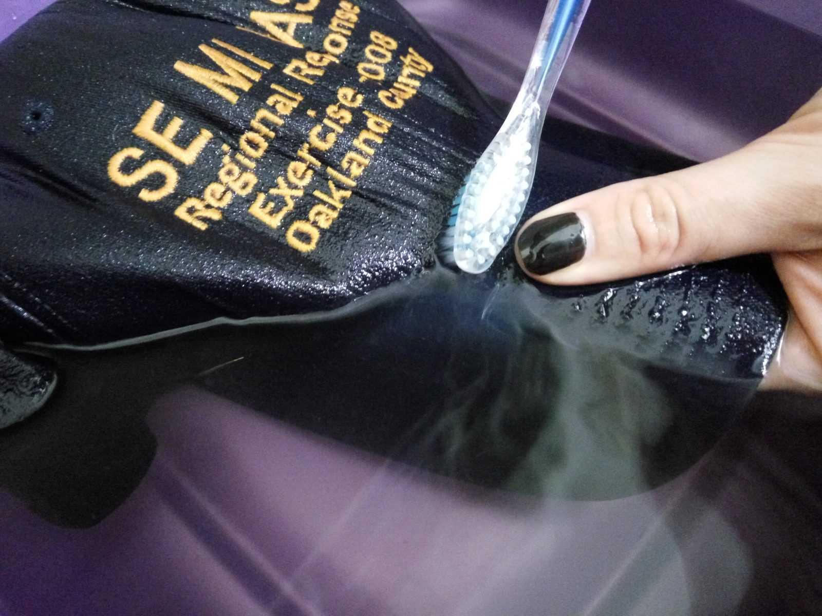 - Далее вам нужно будет достать из раствора кепку и хорошенько почистить ее специальной щеткой (сели такой под рукой у вас нет, вы можете использовать обыкновенную чистую зубную щетку).