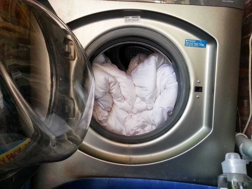 - Предварительно нужно убедиться в том, что все швы чехла абсолютно целые, иначе пух в процессе стирки может вылезти и забить машинку. Если есть мельчайшие дырочки, нужно аккуратно зашить их.