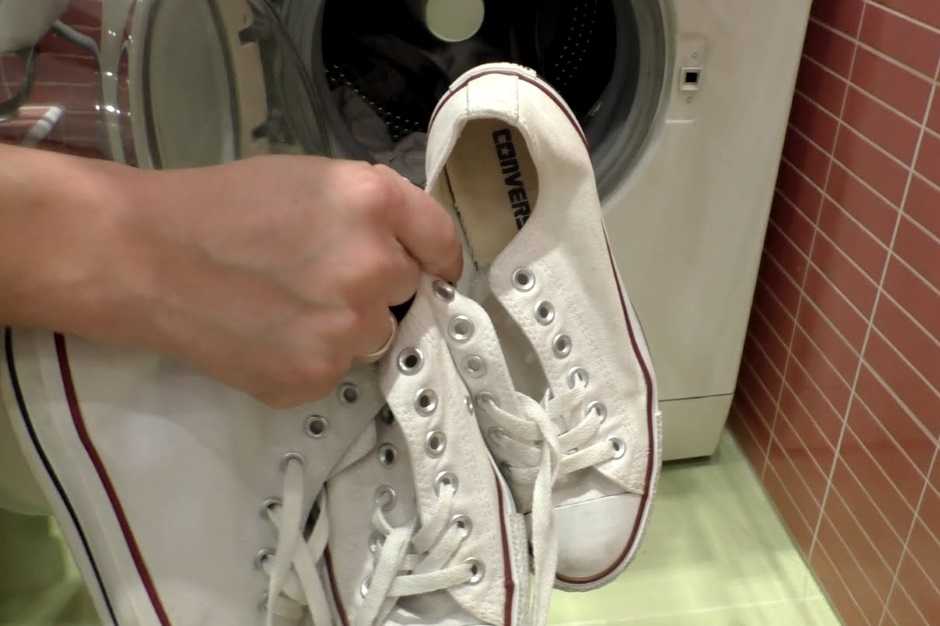 Как постирать конверсы: для этого смесью обрабатывают внутренние поверхности обуви, выжидают некоторое время и удаляют остатки влажной тряпочкой.