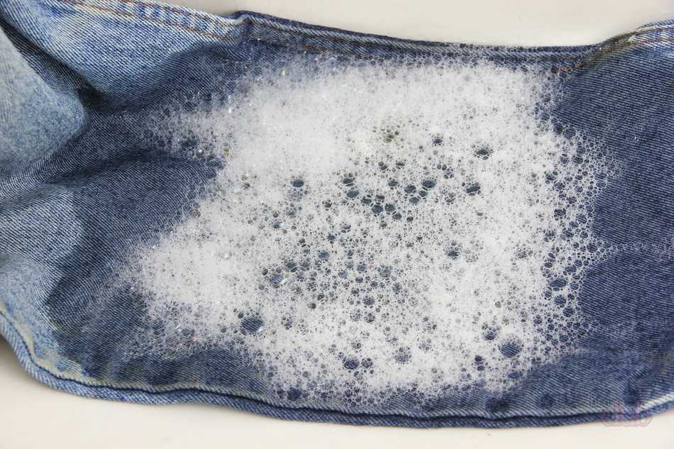 - Джинса. Из-за высокой плотности материи, избавиться от загрязнений на ней непросто. Перед тем, как отстирать ржавчину с джинсов, даже если речь идет о свежем пятне, обработайте испачканный участок любым кислотным раствором – уксусом, лимонным соком, щавелевой кислотой. Только после этого используйте бытовую химию или удаляйте пятна механически.