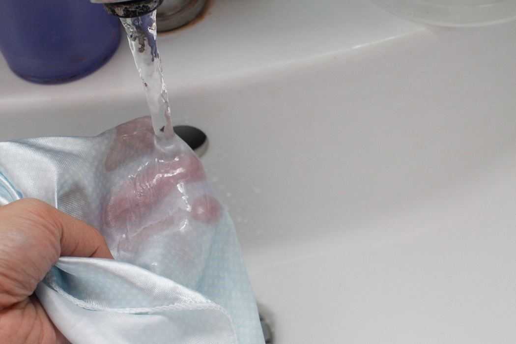 Не рекомендуется использовать для выведения пятен концентрированные средства, лучше разбавить их водой. Слишком агрессивное вещество негативно повлияет на ткань. Если с первой попытки след не очистился, то обработку можно повторить.