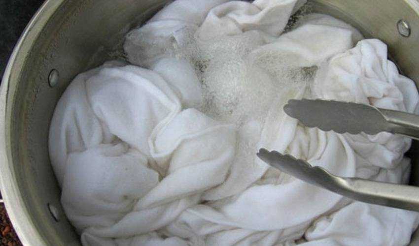 Сегодня большинство домохозяек не кипятят детские подгузники и другие вещи. Но если при устранении клубничных загрязнений ничего не помогает, можно попробовать применить эту классическую процедуру. Налейте в кастрюлю большое количество воды, доведите до кипения. Затем поместите в нее белье, некоторое время прокипятите. Для идеального эффекта добавьте немного тертого хозяйственного мыла.