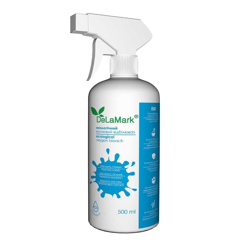 Кислородные отбеливатели также являются химическими средствами. Действующее вещество — пероксигидрат карбоната натрия. Он растворяется в воде, образуя соду и перекись водорода. Выделяющийся активный кислород способствует окислению ткани, при котором пятна, желтизна растворяются. Плюсы: